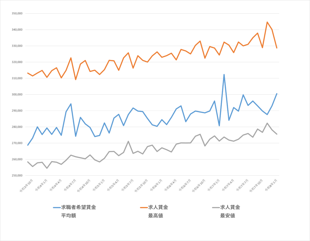 2026年3月時点の求職者希望賃金(平均)は